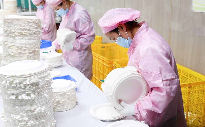 Immediately after molding, our PQC (Process Quality Control) team inspects semi-finished items directly on the line. We check for weight consistency and surface blemishes. Any piece of biodegradable tableware that does not meet our strict aesthetic standards is immediately rejected and recycled back into pulp.